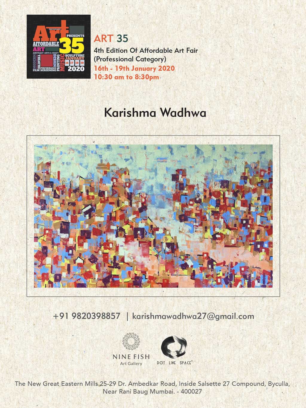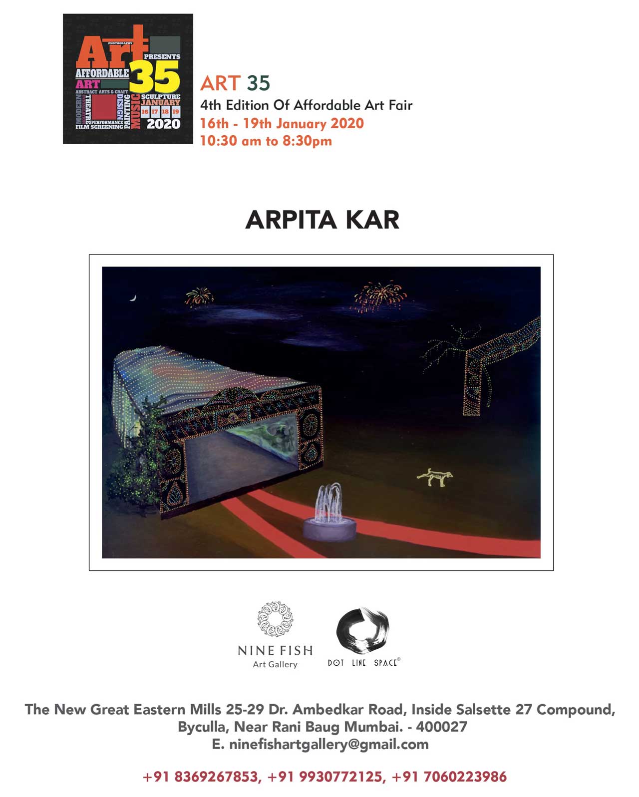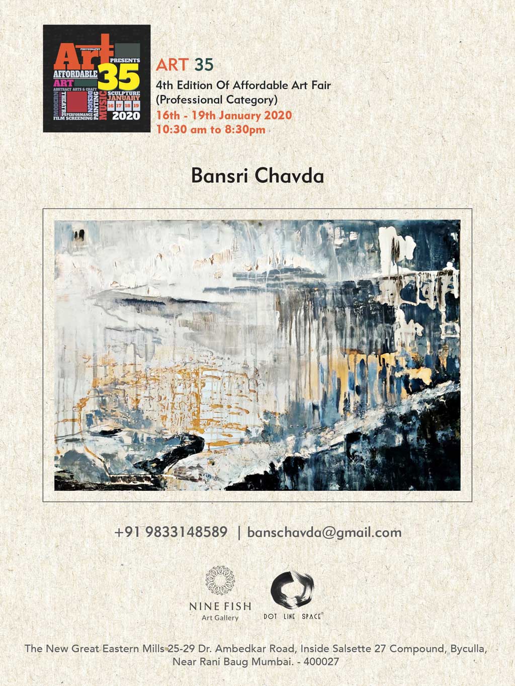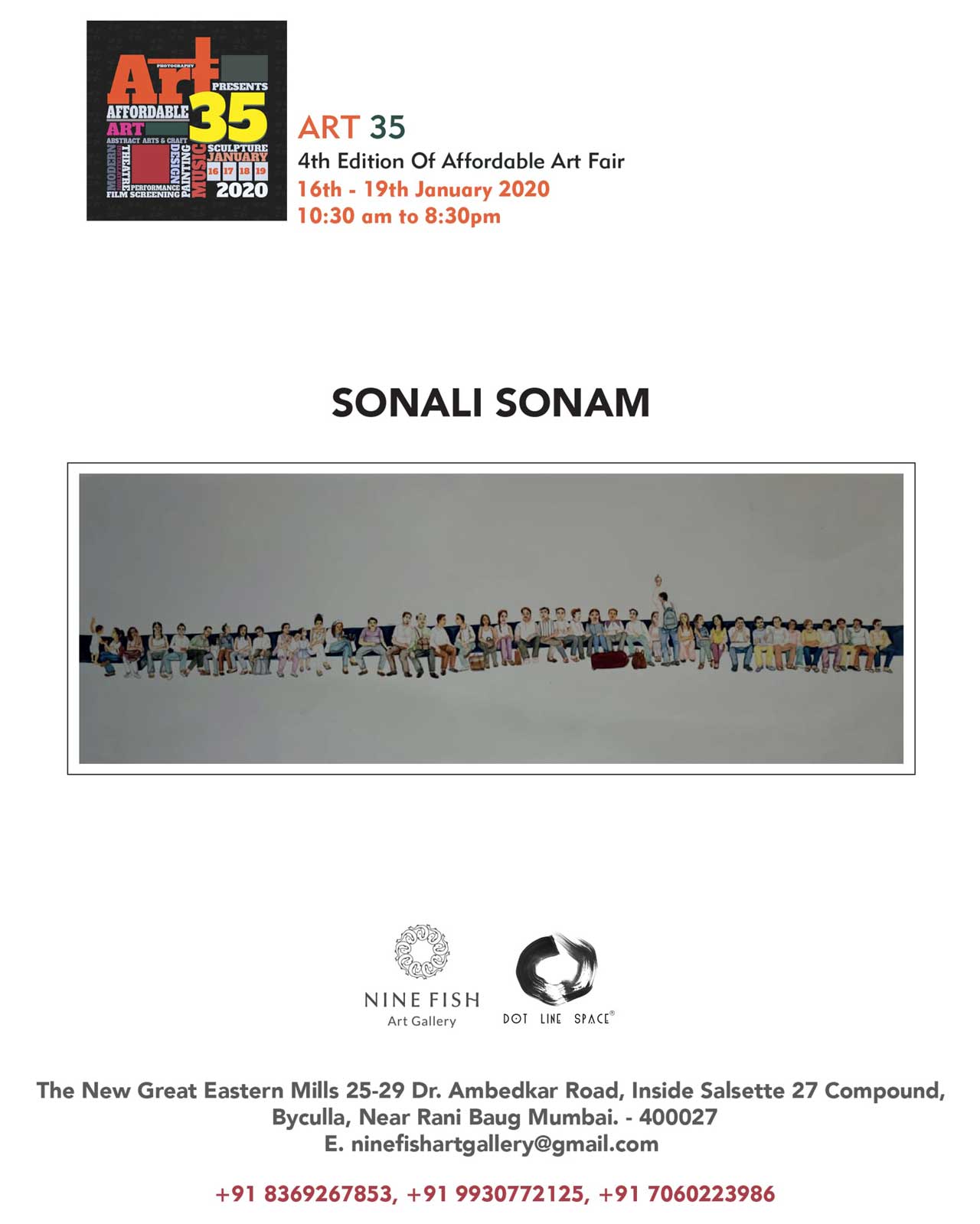 Art35 is an Art Exhibition and Event which celebrates and promotes 35 young Artists from the Indian sub-continent all under the Age of 35! Their paintings, installations, sculptures, films, videos and performances are presented by Nine Fish Art Gallery in association with Dot Line Space Art Foundation, at Byculla in Mumbai. That’s the prime focus of Art35.
